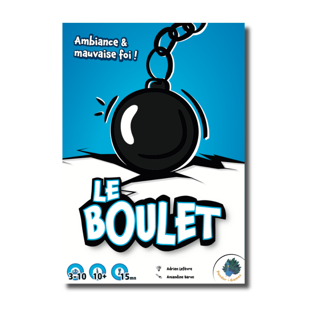 Le Boulet est un jeu d’ambiance et d’association d’images où les joueurs doivent se débarrasser de leurs cartes en les associant selon une expression ou un thème le plus précis possible pour empêcher les autres joueurs d’y associer leurs cartes.